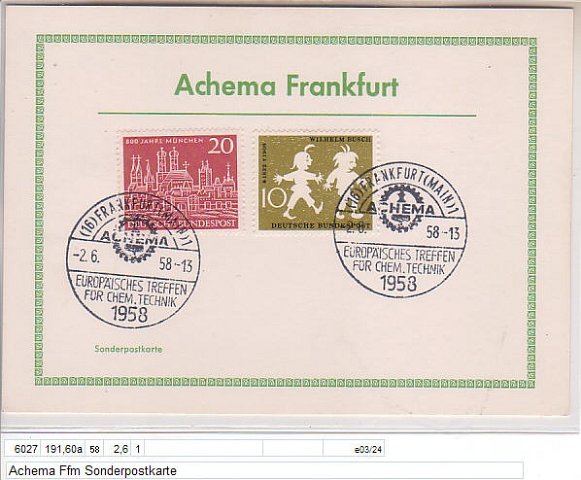 Achema 1958 Europäische Tagung für chemische Technik Ffm 31.5.-8.6.1958