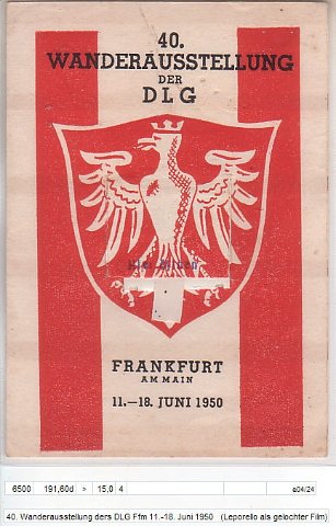 40.Wander-Ausstellung der DLG Ffm 11.-18.6.1950 (R: Werdet Mitglied der DLG ! Lest die „Neue Mitteilungen für die Landwirtschaft“!