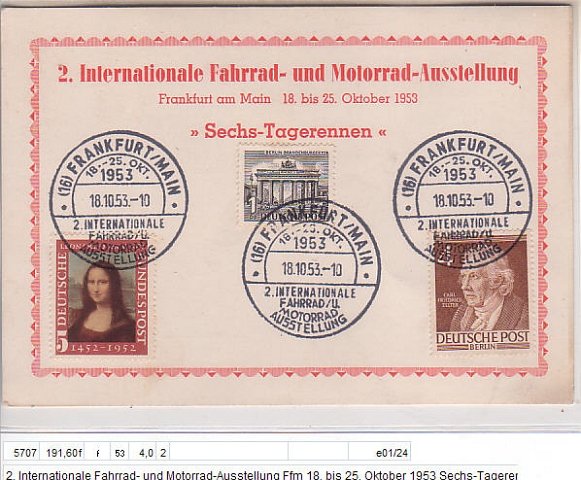 2. Internationale Fahrrad- und Motorrad-Ausstellung Ffm 18. bis 25. Oktober 1953 Sechs-Tagerennen