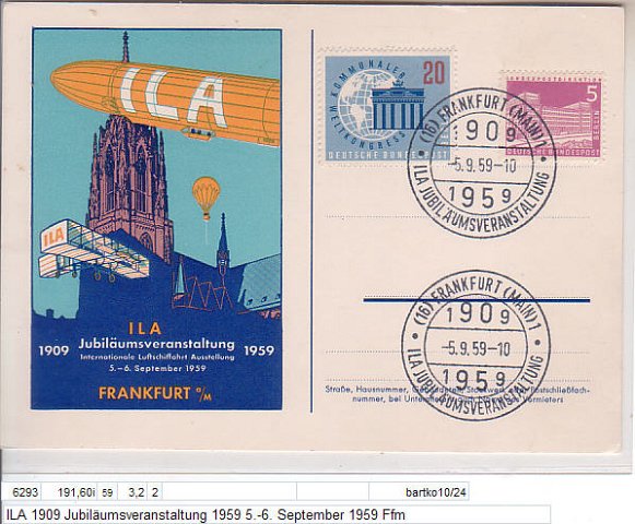 ILA 1909 1959 Jubiläumsveranstaltung Internationale Luftschiffahrt Ausstellung 5.-6. September 1959