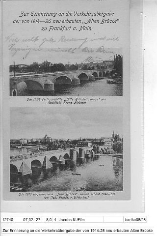 Offizielle Festkarte zur Neubauweihe der alte Brücke in Ffm am 1