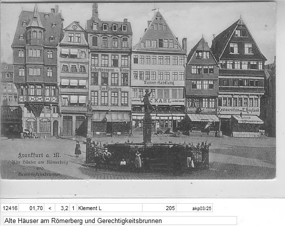 Alte Häuser am Römerberg und Gerechtigkeitsbrunnen