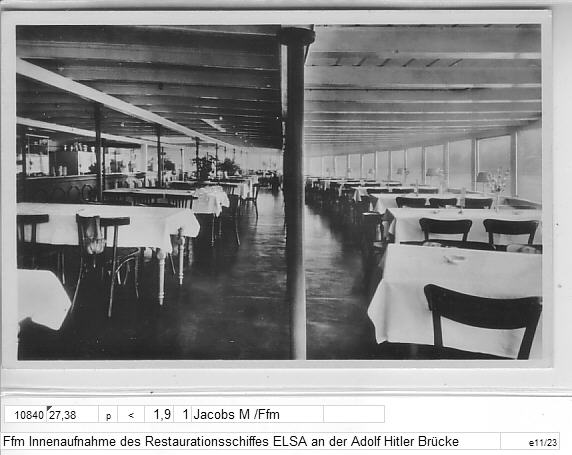 Mosler`s Restaurations-Schiff Elsa, Adolf-Hitlerbrücke (Innen)