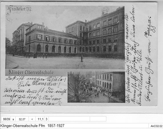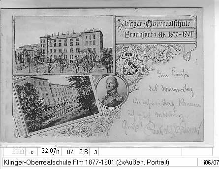Klinger-Oberrealschule Ffm 1877-1901 (2xAußen, Portrait)