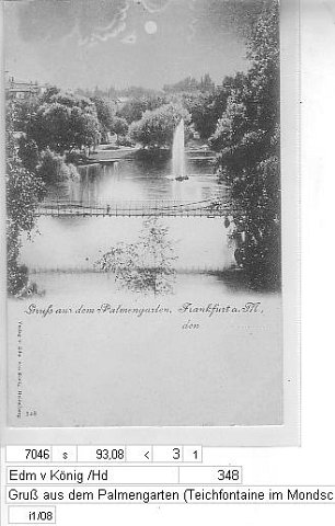 Gruß aus dem Palmengarten (Teichfontaine im Mondschein)