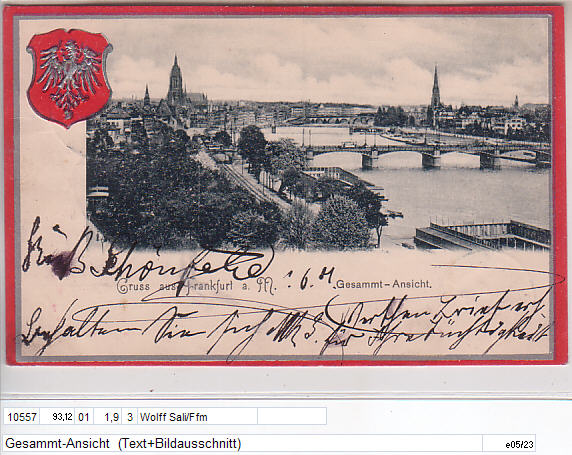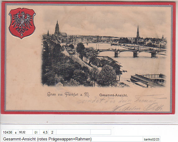 Blick von Sachsenhausen aus (rotes Prägewappen+Rahmen)