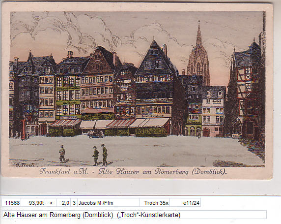 Alte Häuser am Römerberg (Domblick) („Troch“-Künstlerkarte)